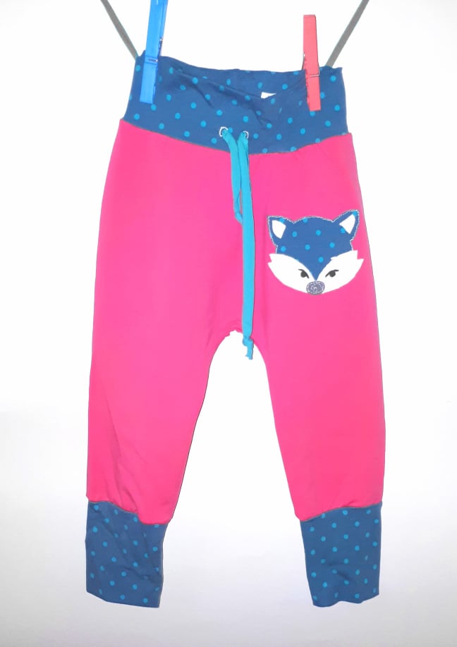 Hlače – kosmatena bombažna prevešenka rastejo skupaj z otrokom in se lahko nemoteno gibljejo in igrajo. Na hlačnicah in v pasu imajo patent in v pasu nastavljivo vrvico. So velik modni hit.